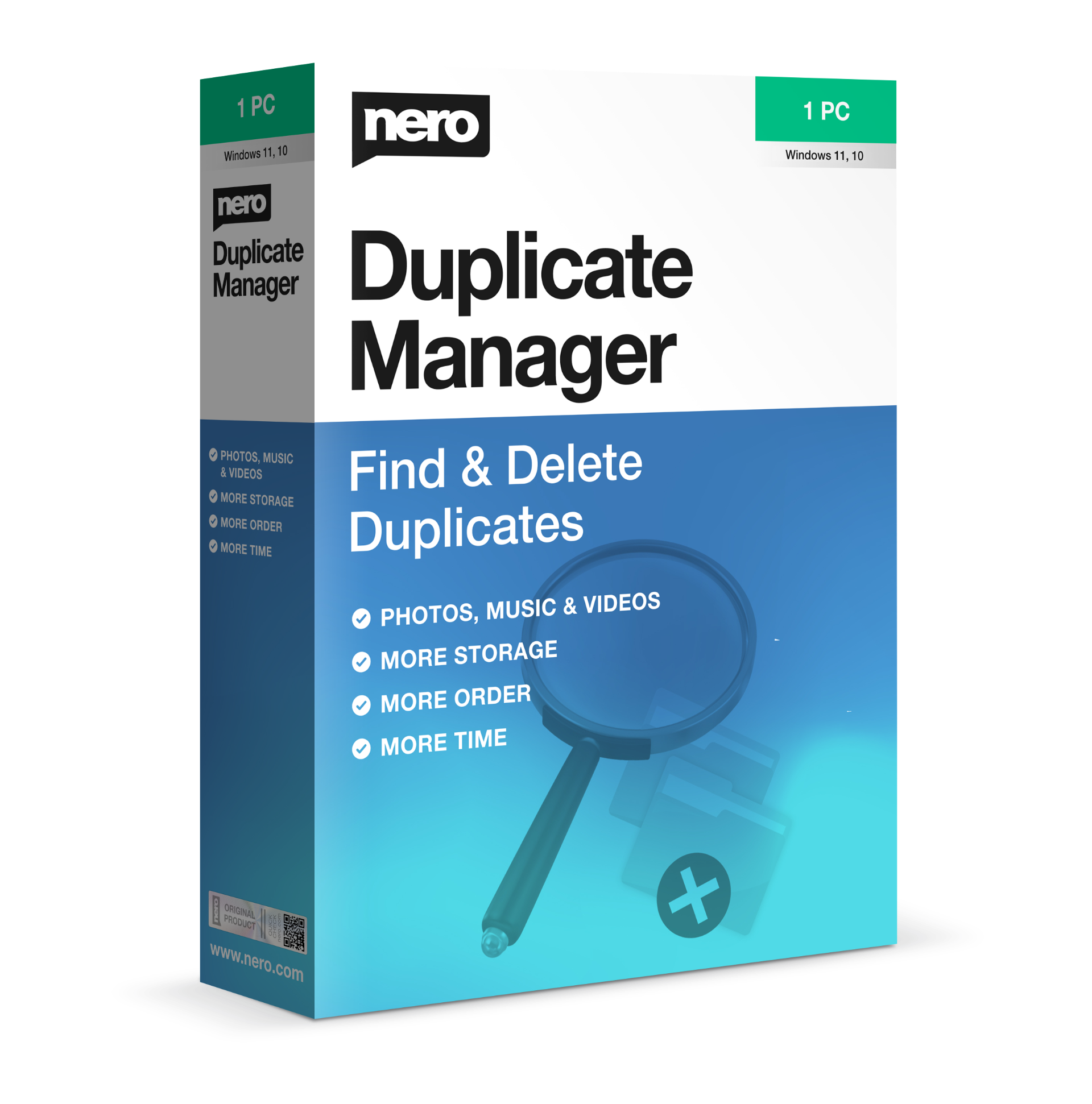 Nero Duplicate Manager reliably finds identical and similar files and helps you remove them safely.